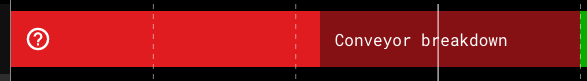 Uncommented production stops are displayed in red and commented unplanned stops are displayed in dark red with the stop name.